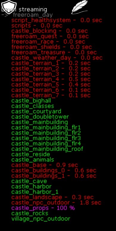 I also changed the way the maps are loaded. Right now it's not that pretty. The important part is that it works better than the old way. Until now only some core maps are loaded. After that the screen will stay black for a short time until all other maps are streamed in. To give you the ability so see what's happening in the background I enabled the text based output on what is loaded.